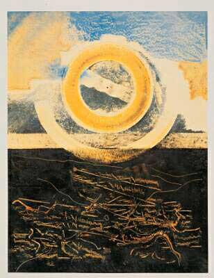 • 13 Bei André Masson, Homme et poisson, handelt es sich um eine Schüttung. Er hat Leim auf die Leinwand aufgetragen und danach Sand. Sand, der nicht haften blieb, wurde wieder weg geblasen. So entstand eine Figur, ein Motiv als Einladung zur Interpretation.
