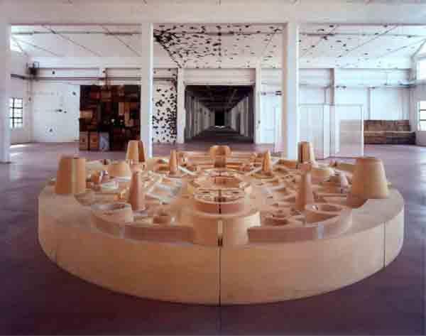 • 39/40 Anne und Patrick Poirier bauen Konstruktionen als Modelle. Abformungen, Sammlung von Steinen, Fotos führen zu einer Rekonstruktion des Bildes, das sich das Ehepaar Poirier von Ostia gemacht hat. Fiktionen und Überlieferungen sowie Reflexionen  vereinigen sich.